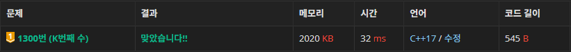 [1300] K번째 수 (C++) 본문