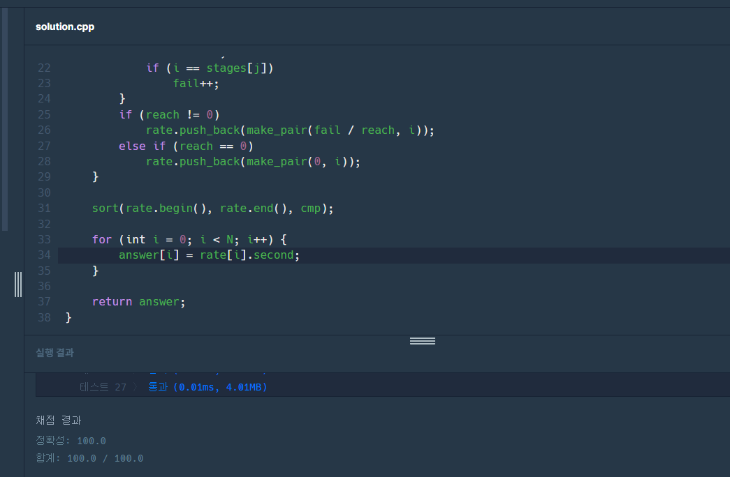 [2019 KAKAO BLIND] - 실패율 (C++) 본문